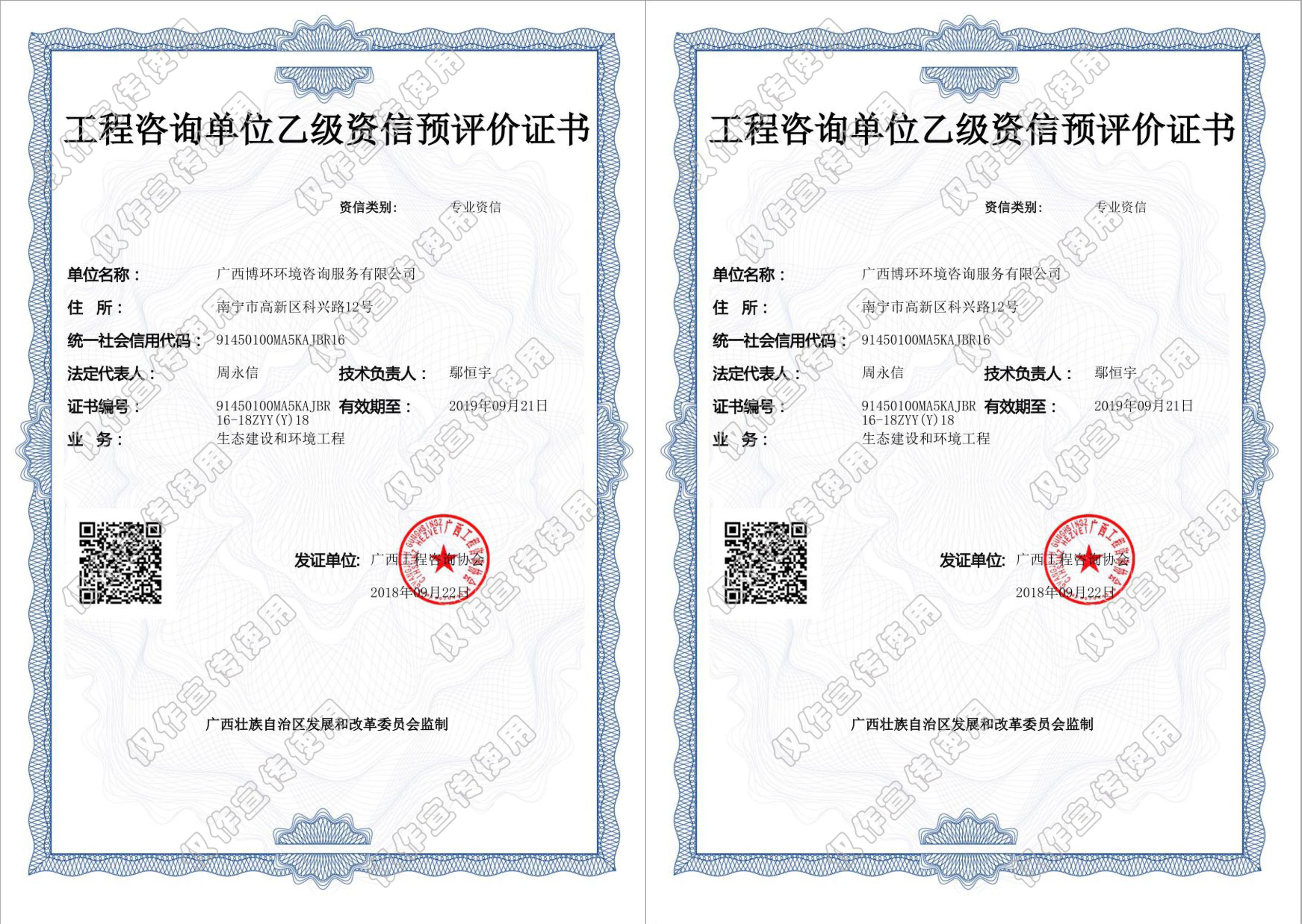 廣西博環環境咨詢服務有限公司系國有控股上市公司博世科( 股票代碼:300422)控股子公司,總部位于廣西南寧市,持有原生態環境部頒發的甲級建設項目環境影響評價資質證書(證書編號:國環評證甲字第2902號)、環境咨詢(環保管家)服務一級認證證書、環保工程專業承包叁級證書。公司是國家高新技術企業、 廣西科技型中小企業、廣西工業節能與綠色發展評價中心、廣西工業固體廢物資源綜合利用評價機構、廣西排污許可工作技術單位、廣西新增戰略性新興產業企業、廣西瞪羚企業、南寧市“專精特新”中小企業等。
